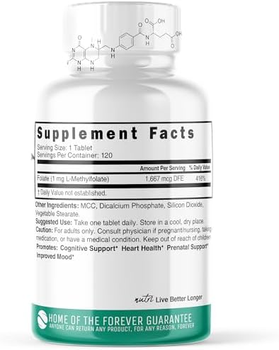 - 120 SERVINGS: Each bottle of our premium 5-MTHF supplement contains a generous supply of 120 vegan tablets, providing you with long-lasting support. Vegan-friendly and free from any animal-derived ingredients, our tablets are carefully crafted to cater to your specific dietary preferences while offering maximum efficacy.