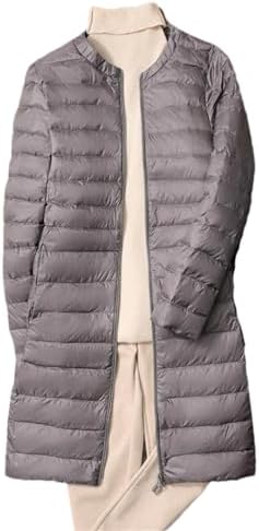 Women Autumn Winter Ultralight Long Duck Down Coats Style O-Neck Feather Liner Collarless Puffer Jackets Gray M
