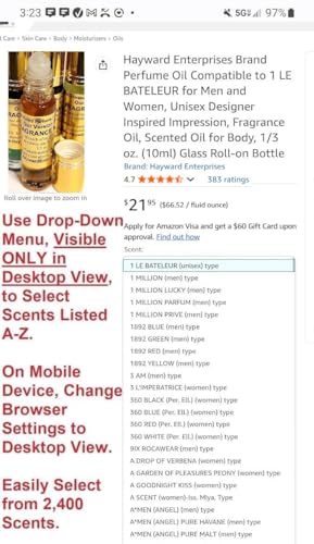 - See menu list above (visible only in desktop view), to select from list of over 2,300 fragrances. On Mobile Device, View Menu List by Changing Settings to Desktop View.