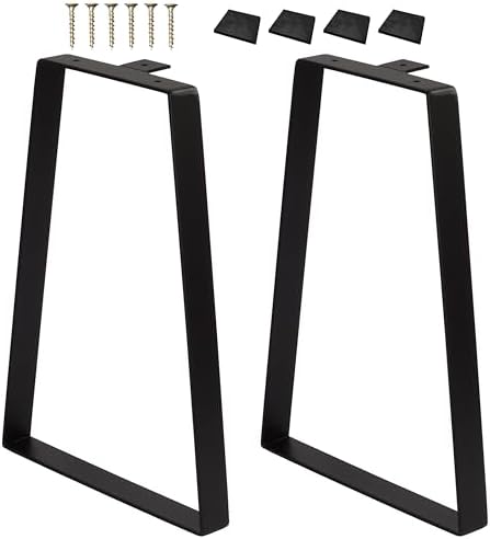 CODIN 16 inch Trapezoid Metal Table Legs, Set of 2 Replacement Furniture Legs for DIY Coffee Tables, Heavy Duty Iron Leg for Modern Desks, Night Stands, Bench, Sofa (16", Black)