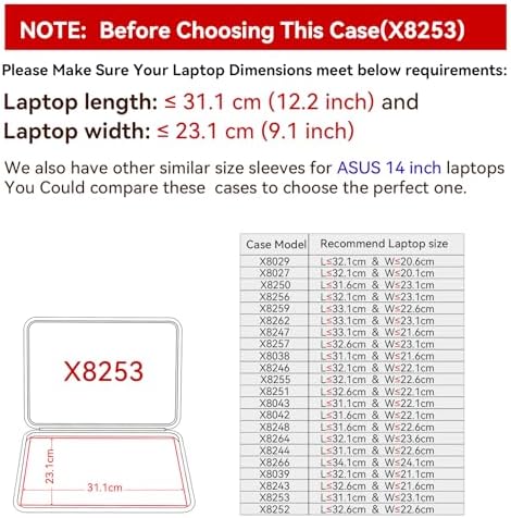 Model No.: X8253; internal dimensions of the case: 31.5x23.3x2.7 cm (12.4x9.2x1.1 inch)