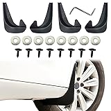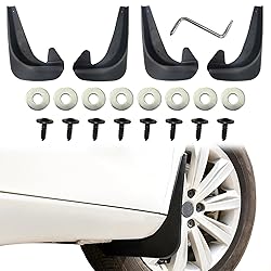 [Durable material]: This car black mud flaps are made of plastic, the overall strong and durable, and has good flexibility and stretch, resilience is also very good, and can withstand repeated bending, can withstand any extreme weather and harsh road environment, extremely durable, providing long-lasting protection for your car [Adaptability]: The overall dimensions of this car front and rear mudguards are 9.84x7.09 inches (L x W). Its universal size and cut-able feature make it suitable for most car models. However, it is also necessary to check if the hole positions are consistent. Therefore, before purchasing, please carefully check the basic information of this mudguard or ask us, to prevent incorrect installation [Good protection]: This no drill splash guards can effectively block the mud and gravel splash, wear resistance and give your car increased protection. With this guard, you can reduce the number of car washing and painting, prevent premature rust of auto parts, thereby increasing the service life of the car [No drilling]: This car anti splash mud shield is very convenient to use. Installation does not need drilling and tape, you only need to find the original car fender position, distinguish the front and rear positions, align the arc and hole position, the screw is good, hard tighten, the installation is complete. Install firmly, not easy to lose [Package contents]: The package includes 4 x car mud flaps splash guards, 1x hex wrench, 8x spacers and 8x screws, which provides you with all the mounting parts and mounting tools for 4 wheels