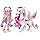 - Unia tiene unas exclusivas modas de arcoíris con acabados irisados y hermosos zapatos. Tiene el cabello largo trenzado en arcoíris que coincide con el cristal elemental en su frente. Unia tiene 7 puntos de articulación para facilitar la postura y el juego. Su montura Estrella Arcoíris coincide con el tema colorido y brillante, y juntos forman el dúo Pixling más increíble.
