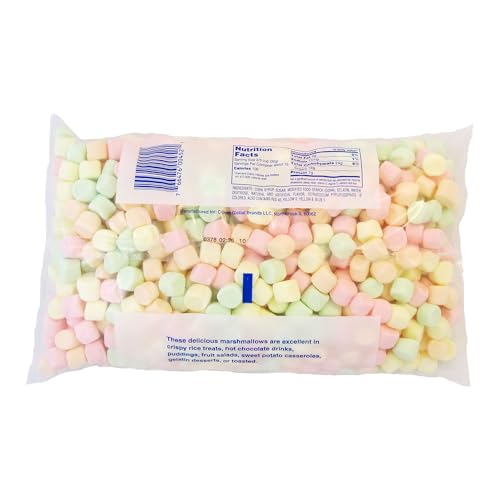 Colored marshmallows come in assorted colors of pink, yellow, orange and green with flavors of strawberry, lemon, lime and orange. They can be used in a variety of ways: cocoa bombs, easily melted for rice crispy bars, blended into gelatins and/or puddings or garnish on cakes, yam casseroles or hot chocolate. 1/1 lb. poly bags.