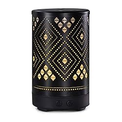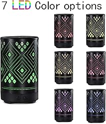Gorgeous Design: This aroma diffuser has a metal outside with a gorgeous design rather than just cheap plastic, fit nicely into any décor without looking harsh, perfect for bedroom, dining room, living room, office, yoga, Flexible Light Setting: This diffuser has the option for rotating the 7 soothing colors or to just set on one certain color and you can also turn the light off completely and only have mist. Very Quiet and Easy to Clean: Extremely quiet while working, automatically shut-off with NO Beeping when it's waterless, nice for bedtime. What's more, the wide base makes it VERY easy to clean.Large Capacity & Great Mist Outputaroma diffuser can run up to 6-10 hours with 30-80ml/H. It can last on a full day or night. 7 Soothing LED Light & Unique Hollow design7 colors with steady on/changing color mode. Each color has two light options: bright and dim. Press the "LIGHT" button for 3 seconds, light turn off. This aromatherapy diffuser has Uniform hollow-out design,with 7 soothing LED light and Mist,Create a warm and romantic atmosphere. This diffuser is extremely quiet when working. It gives out ultra fine and smooth mist which can soften and moisten dry and chapped skin in winter.This aromatherapy diffuser will not disturb your study, work or sleep. [What You Get]1x Aromatherapy Diffuser, 1x AC Adaptor, 1x Instruction manual,If you have any issue with your diffuser, do not hesitate to contact us - your satisfaction is paramount Note: this is an essential oil diffuser, but you also can use it as a humidifier if you like.