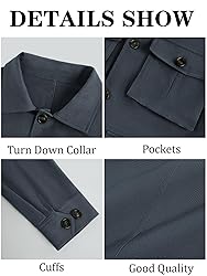 FEATURES:Safari jacket for men, lightweight windproof jacket, solid color, long sleeve, button down, stylish jacket, turn down collar, natural fit, multi pocket. Spring fall winter coats, Casual Jacket, keep fashion and comfortable. FABRIC: This jacket is made of high-quality material, which is durable. The fabric is lightweight and durable, allowing for easy movement without compromising durability. Soft to the touch for maximum comfort throughout the day. MATCHING: This jacket features a button closure for a classic yet versatile style. It can be worn effortlessly or casually for all occasions. Wear yours with a shirt and pants at the office, or with jeans for a more casual look. OCCASION: This casual outdoor military jacket coats is inspired by army uniforms and practical classic work wear. Great for safari, sightseeing, fishing, camping, traveling, photography, and suitable for casual daily work wear in fall or winter. Care Advice: This jacket is easy to care for and an easy addition to your wardrobe. Simply machine wash cold and tumble dry low. Please follow the care instructions to maintain its quality and appearance.