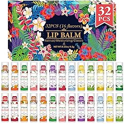 Flavored Lip Balm: 16 flavors -Honey, Vanilla, Mint, Coconut, Strawberry, Cherry, Orange, Grape, Mango, Watermelon, Peach, Rose, Pomegranate, Plain, Lemon, Green Tea. The flavors are subtle and not overpowering Natural Lip Balm: Formulated with natural ingredients that hydrate, nourish, and protect lips, our lip balms ensure your lips stay healthy and soft. Paraben-Free. Phthalates-Free All-Day Lip Care: Made with Beeswax plus Vitamin E and coconut oil, this helps to nourish and hydrate the lips by supporting your natural skin barrier. Just one swipe of this, it gives a slightly glossy finish to your lips as well Gift giving preference: Such a fun chapstick pack, all the great flavors. This lip balm set would make cute party favors, stocking stuffers, bulk gifts for coworkers Attentive Service: We are sure you will love our lip balm, which is a fun pack that can be used for freebies for small business or other little gifts. If you are dissatisfied, please contact us on Amazon, your satisfaction is our guarantee