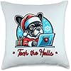 ROUTINE EAT SLEEP CODE REPEAT Fun Developers Memes TECH The Halls Funny Christmas Frenchie Santa Claus Dog Meme Throw Pillow, 18x18, Multicolor