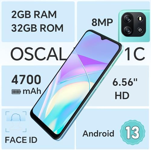 OSCAL Unlocked Phones 2024 Cell Phone, 4GB RAM, 32GB ROM, 1TB TF/SD, 6.57-inch HD Display Smartphone, Flat 1C Android13 Phone, 4700 mAh, 12MP Camera, 10W Fast Charge Dual SIM Unlocked Phone Cellphone
