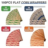 ESSENTIAL 100 pcs Assorted Packed Flat Stripped Coin Wrappers, Coin Rolls Wrapper for Quarters, Dimes, Nickels, Pennies