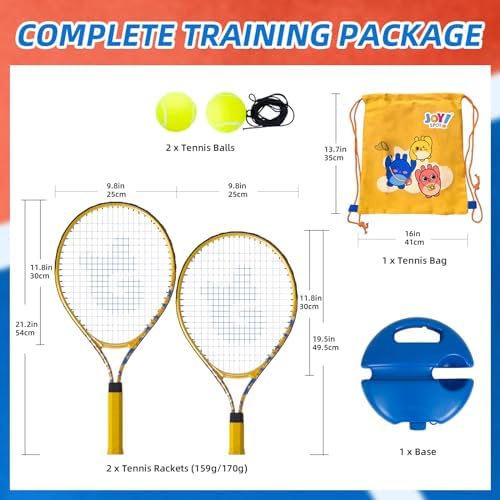 - 【Complete Training Package and Professional Coaching Resources】Our tennis set for kids not only includes the rackets but also comes with 2 balls, 3 Overgrips and 1 Tennis Trainer Rebound Ball, providing everything your child needs to start playing tennis. In addition, we provide educational videos that teach your child the rules of the game, proper technique, and key body mechanics, ensuring they receive expert guidance to improve their skills