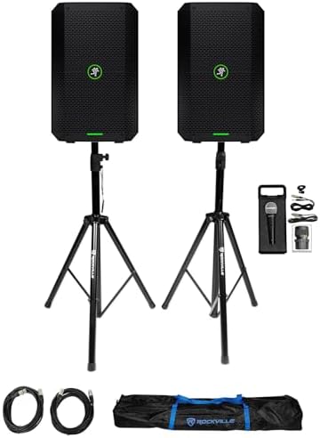 - Package Includes: (2) Mackie Thump GO 8" Portable Battery-Powered Rechargeable DJ PA Speaker+Bluetooth. (1) Pair of Rockville Adjustable Tripod Speaker/Light Stands+(2) 20 Foot XLR Cables. (1) Rockville RMC-XLR High-End Metal DJ Handheld Wired Microphone Mic w (2) Cables. Features: Thump GO - 8" Portable Battery-Powered Loudspeaker. Ultra-efficient Class-D amplifier. 8" Custom high-output woofer. 1" Compression driver. Removable lithium-ion battery (included). Tri-color battery life indicator
