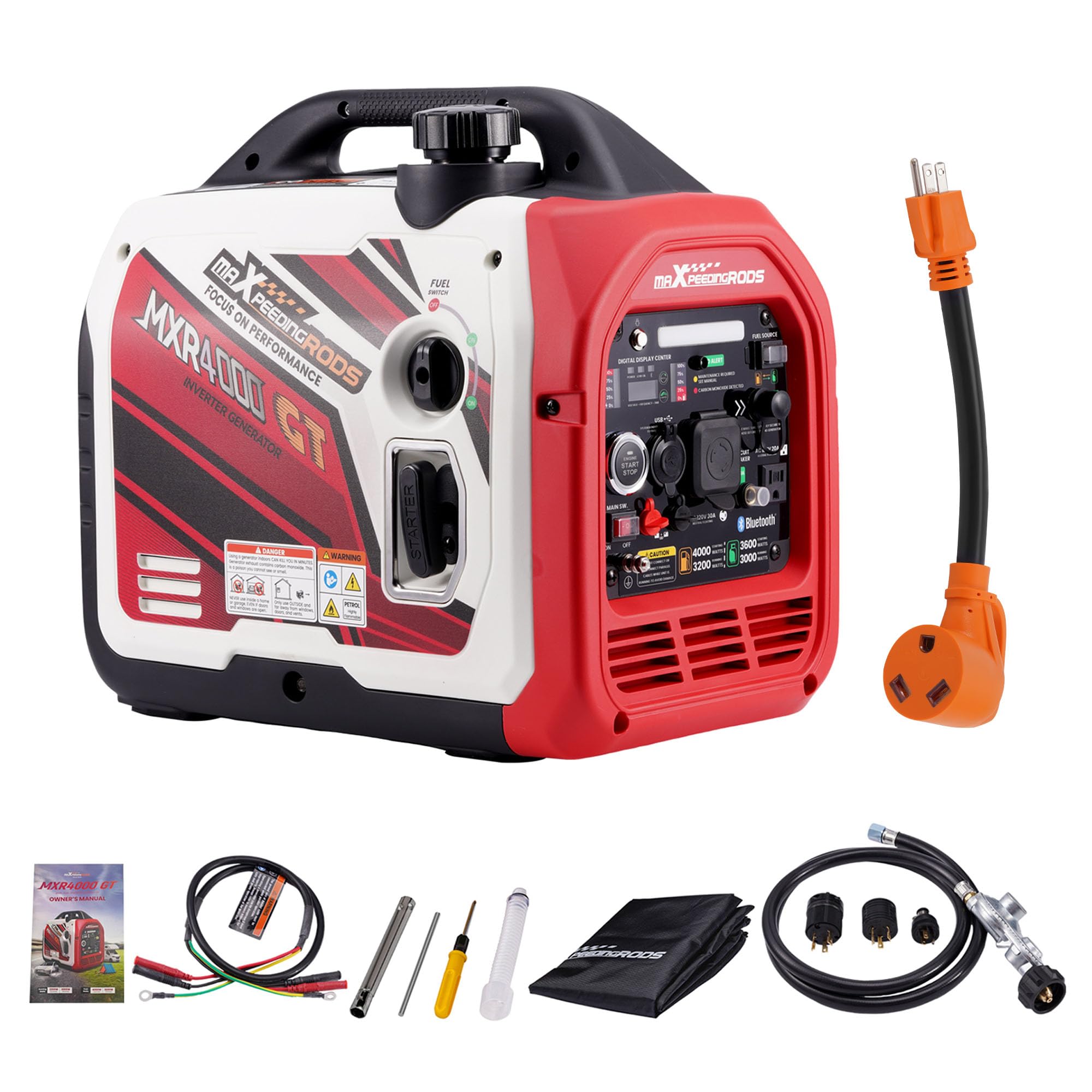 maXpeedingrods 4000 Watt Inverter Generator Portable, Bluetooth® App Remote Data Monitor, RV Ready, Gas Powered Generator with CO Alarm for Outdoor Camping, Home Backup