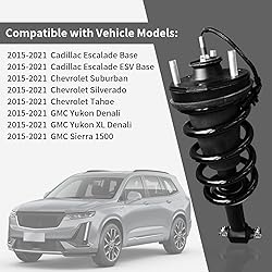 Vehicle Models Compatibility List: for Cadillac Escalade Base 2015-2021, for Cadillac Escalade ESV Base 2015-2021, for Chevrolet Suburban 2015-2021, for Chevrolet Silverado 2015-2021, for Chevrolet Tahoe 2015-2021, for GMC Yukon Denali 2015-2021, for GMC Yukon XL Denali 2015-2021, for GMC Sierra 1500 2015-2021 Reference Oem Number: 84176631, 23464589, 580-1108, 580-1032, 23151123, 23312167, 84061228, 75-22345, 75-877692B, 17522345-101, 17522345-102, 17522345-103, 17522345-104, 23151115, 23151116, 23151117, 23151118, 23151119, 23151120, 23151121, 23312152, 23312153, 23312155, 23312156, 23312158, 22283444, 22300918, 23464582, 23464583, 23464585, 23464586, 23464587, 23464588, 89977478 In-Situ Installation: Our shock absorber assembly snap and shape are the same as the original, direct in-situ replacement of the original one without any modification Eliminate The Sound: Our Front Left and Right side w/Magnetic Ride Control (MRC or MagneRide) shock absorbers are made of natural rubber, which reduces vibration and noise and eliminates machine noise by more than 99% Smooth Operation: The COMPLETE ASSEMBLY shock struts can effectively solve cornering, high-speed instability, emergency braking, and nodding so that traveling is more stable and safer