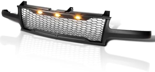 SPEC-D TUNING Matte Black Mesh Grille w/LED Lamps Compatible with 1999-2002 Chevy Silverado 1500