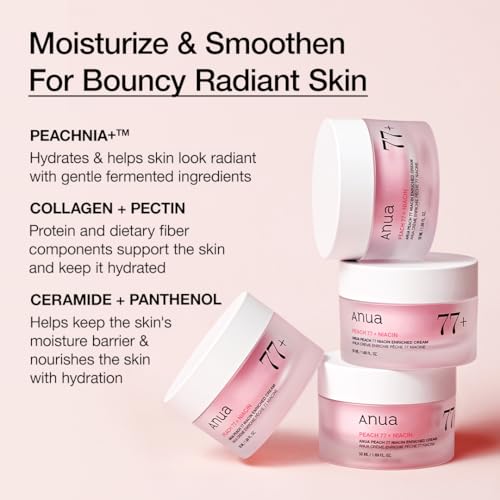 Anua Peach Niacinamide Cream, Face Moisturizer for Dry Skin with Vitamin B12, Collagen, Ceramide, Panthenol, Korean Skin Care for Glass Skin (50ml, 1.69 fl.oz.)