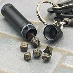 Portable Keychain Dice: Only about 6mm in size. Each dice set comes with a tube dice case for carry with your kecyhain. Functional Metal Dice Set: The mini dice are made of solid zinc alloy. Small but with clear numbers. Cute and fully functional. A Fun Way to Carry Dice: We totally understand the feel of having one set at hand anytime anywhere is just, cool. The metal dice tube with mini dnd dice inside is a perfect solution. Perfect DND Gifts and Accessories: Whether you're in need of d&d dice, cool dnd gifts or simply looking to enrich your dice collection, our mini metal dnd dice is a must have. You Will Get: 1 set of 7pcs mini dice set, 1 metal tube case with keyring attached.