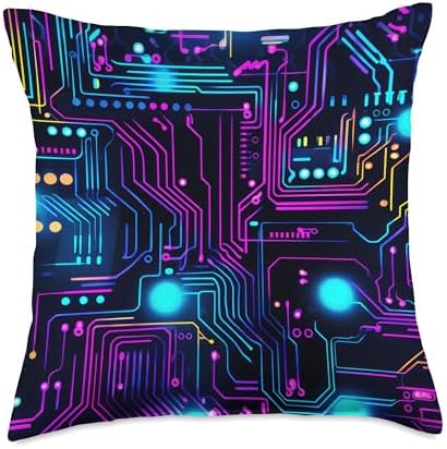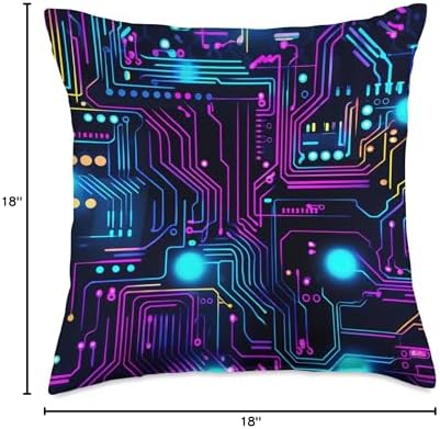 Computer Nerds and Geeks Tees & Accessories Programmer, Coder Engineer IT tech Circuit chip Men Women Throw Pillow, 18x18, Multicolor
