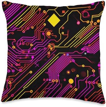 Computer Nerds and Geeks Tees & Accessories Programmer, Coder Engineer IT tech Circuit Yellow Fuchsia Throw Pillow, 16x16, Multicolor