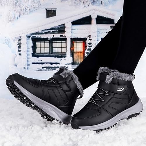 LLDYYDS Winter Snow Boots for Women/Men Fur Lined Thermal Warm Ankle Boots Lace Up Anti-Slip Outdoor Hiking Sneaker Boots Pointy Boots For Women Womens Booties Wide(Black, 9)