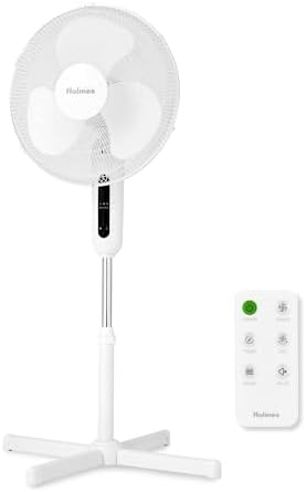 HOLMES 16" Digital Stand Fan, 80° Oscillation, 3 Speeds, 3 Modes, 7.5-Hour Timer, Adjustable Height, 30° Head Tilt, Ideal for Home, Bedroom or Office, Remote Control, White