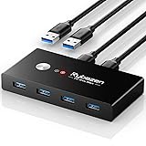 - USB Switcher 2 Computers 💡USB 3.0 switch selector Sharing 4 USB Devices KVM Switch Hub Adapter for Keyboard, Mouse, Printer, Scanner, Computer, U-Disk, Hard Drives, Headsets, KVM Console Box Compatible with Mac/ Windows/ Linux; ✔USB 3.0 Switch supports ultra-fast USB 3.0 data transfer rates of up to 5Gb/s (10 times faster than USB 2.0); If your device only has USB2.0 ports or lower, you won't be able to export USB 3.0 speeds. The maximum output speed depends on the maximum speed your device can output. ✔Different LED lights will indicate to different PCs when you switch. Note: This KVM USB Switch will not 'automatically' switch between devices, it needs to switch the computer by manually controlling the button. 💡Package: 1 * USB 3.0 KVM Switch 2 * USB 3.0 Data Cable 1.5m 1 * 5V 2A 1m USB 2.0 to Micro USB Cable for devices needs extra power supply. 💗Ideal USB Switcher 2 Computers Sharing 4 USB Devices, Free Your Desk Space and Save Your Time! 💗Thanks to the 2 in 4 out USB switch hub design, this KVM Switch USB is very nice to expand your PC' USB 3.0 port into 4, helping to save time and space! 💗Easily to support 2 computers to share 4 USB 3.0 peripheral devices like keyboards, mouse, U disk, printer, scanner!