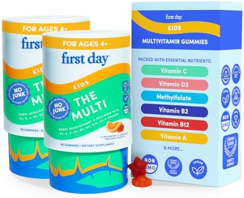 - Essential Kid Vitamins: First Day kids vitamins multivitamin is expertly crafted with a blend of real organic fruits and vegetables, transforming meals into a powerhouse of essential nutrients, fulfilling children's multivitamins needs. Feel reassured as every sweet, tasty gummy with best kids vitamin multivitamin gummies fills the critical nutritional gaps, supporting their growth, energy, and focus while boosting brain function and immunity. Daily vitamins for kids.