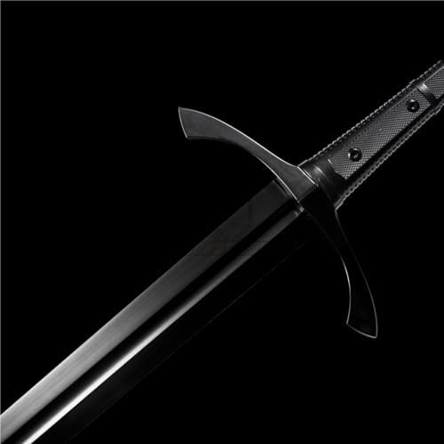 45inch Handmade Medieval Claymore Real Long Sword Swords Full Tang Black Blade | Self Assembly Detachable | Modern DIY Style | Spring Steel 65Mn Bend 60° | with Scabbard