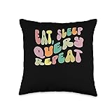 Funny Software Programmer Shirt Query Lover Eat Sleep Query Repeat-Computer Coding Database Retro Throw Pillow, 16x16, Multicolor