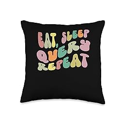 100% Polyester Are you a Software Programmer who loves Coding & programming? Or maybe you know someone who is? This Retro Groovy eat query sleep repeat design, Awesome gift for a Developer, Computer Science Student, Software Engineer or any other IT professional. 100% spun-polyester fabric Double-sided print Filled with 100% polyester and sewn closed Individually cut and sewn by hand Spot clean/dry clean only