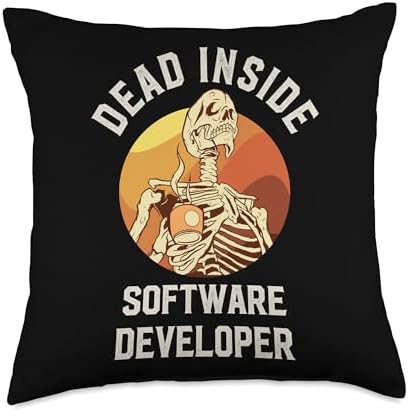 Dead Inside Funny Apparels Dead Inside Software Developer Skeleton Coffee Throw Pillow, 18x18, Multicolor