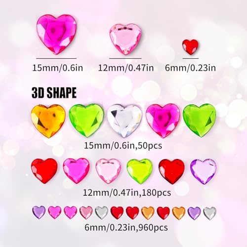 - Value set: the Gems for crafts contains 3 different sizes acrylic hearts, including 18 mm, 10 mm and 6 mm, proper to be applied in many kinds of crafts projects; The 3D heart crystal gems have vibrant colors, You can choose to use it according to your actual decoration needs