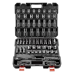 - VEVOR 1/2" Drive Impact Socket Set, 65 Piece Socket Set SAE 3/8" to 1-1/4" and Metric 10-24mm, 6 Point Cr-V Alloy Steel for Auto Repair, Rugged Construction, Easy-to-Read Size Markings, Storage Case
