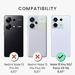 - Our brand stands for modern, practical and affordable gadgets for smartphones, tablets and other electronic devices. We offer the perfect accessories for a variety of manufacturers' brands and models.DetailsCOMPATIBILITY: Compatible with Xiaomi Redmi Note 13 Pro 5G / Poco X6 5GCAMERA PROTECTION: Raised edge around camera lens provides added protection for your smartphonePROTECTS: Offers all around protection with raised edges around your screen for a tough smartphone caseSLIM TPU: Slim design is lightweight, soft to the touch and the matte finish is non slip and anti fingerprintCUT OUTS: Precise cut outs allow accessibility to all ports, buttons and functions while phone is protectedProduct Information1x Smartphone Case in Matte Finish