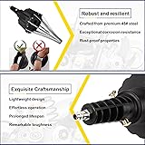 Exquisite craftsmanship:Crafted from premium 45# steel and rubber material, this pneumatic CV joint starting lifting tool expander showcases exceptional corrosion resistance, rust-proof properties, lightweight design, prolonged lifespan, effortless operation, and remarkable toughness. Rest assured of its unparalleled durability and reliability Robust and resilient:The pneumatic assembly tool utilizes the power of compressed air to extend the articular arm effortlessly. The air pressure can be finely adjusted with a simple push of a button, eliminating the need for additional lubrication. This product features an ergonomically designed handle that is insulated against cold temperatures, along with a 1/4" coupling connector for seamless compatibility. Furthermore, it boasts an ultra-lightweight case crafted from specialized plastic User-friendly:The installation of the CV joint shoe is a breeze with this tool. Simply apply lubrication to the shoe, place it on the expansion finger to activate the air valve, expand and position it onto the joint, then release for immediate use Scope of application:Suitable for all universal and original vehicle CV joint boots. For CV joint boots diameter from 20 - 120 mm. Package include:1 x CV Joint Boot Installation Tool,4 x Black O ring,3 x 1/4" NPT air hose nipple,1 x Pin 100% Customer satisfaction: Should you encounter any issues or concerns with our products, we are committed to providing prompt assistance and resolving them promptly. Our top priority is ensuring your complete satisfaction