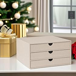 🗄️ Efficient Use of Limited Space: This is designed to maximize the use of vertical space and organizing and storing small quantities of documents, making it a great option for smaller offices and home workspaces. Dimension: 13" Width by 9.5" Depth by 8" Heigh, 2" per drawer heigh 🗄️ Easy Organization: Multiple drawers in this small file cabinet organizer could be used to categorized and separate different types of documents. As a result, you could access your documents without having to search through piles of paper or cluttered desktop, saving time and staying organized 🗄️ Protection from Damage: By storing your documents in this 3-drawer small file cabinet organizer, you can help protect them from damage due to moisture, dust, or other environmental factors. It is also easy to move which can be beneficial if you need to move your documents to a different location 🗄️ Versatile Use: Besides documents and files, this one could be used to store small office supplies like pens, paperclips, post-it notes, notebooks, remote controls, mobile phones, school glue sticks, marker, note paper, business cards, stapler, scissors and so on, helping to keep your workspace organized and clutter-free 🗄️ Aesthetically Pleasing: Say goodbye to cheap plastic document organizer. Made of high density wooden board and covered with selected faux leather exterior and non-woven lining interior, this one could withstand frequent use, making it a long-lasting and cost-effective organizational solution. A must-have accessory for anyone who wants to add a touch of personality to your desk organization