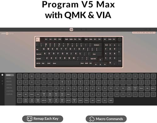 - Keychron V5 Max is a custom mechanical keyboard, offering both 2.4 GHz wireless and Bluetooth 5.1 connectivity. Its compact 96% layout, upgraded MCU and gasket design, together with sound-absorbing foam, hot-swappable feature and more deliver all-around typing comfort.