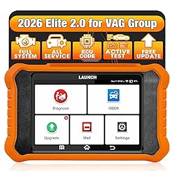 【All-In-One Diagnostic Tool fit for VW Owner】Upgraded of LAUNCH Creader Elite, 2026 LAUNCH Creader Elite V2.0 OBD2 Scanner for VW and Audi, equipped with advanced Android 8.1 OS & 4'' Touchscreen, which fast boot-upping to make the diagnostic process smoother. Also be feature-rich, supported OE Full System Diagnosis, All Reset Service, Bi-directional Control, Battery Register, 10 Full OBD2 Functions ,Auto VIN ,WiFI Lifetime Free Update, etc. A Must Have for VW/Audi/Skoda/Seat Owner. 【Powerful Bi-Directional Control/Active Test】LAUNCH Creader Elite V2.0 fit for vw and audi obd2 scanner, inherits the advanced bi-directional control features of LAUNCH X431 series. It allows you to control many systems/components on VW/Audi/Skoda/Seat cars, helping you to check if the car actuators are all in good condition, without using the vehicle controls. And you can use this vag scanner to recalibrate, readapt or reconfigure certain components after making repairs or re-placement. 【Customize Your Car Easily】2026 LAUNCH Creader Elite V2.0 fit for VW and Audi bidirectional scan tool has fully upgraded. It also supports Flash Hidden Functions, Customize OE-settings, Component Matching, etc. to help major maintenance and repair tasks. 📧Check compatibility firstly via ediag tools @ hotmail . com. 【All Free Maintenance Services, Meet Your Daily Need】This LAUNCH Creader Elite V2.0 diagnostic tool for VW/Audi/Bentley/Seat/Skoda/lamborg comes with ALL FREE special functions, including ABS Bleeding, SAS Reset, Battery Registration, Oil Reset, EPB Reset, Throttle Speed Relearn, Transmission Adaption, DPF Regeneration Reset, TPMS Reset, Suspension, etc. 📧Funcitons vary by models. Reach us via ediagtools @ hot mail .com to check compatibility. 【OE-Level Full Systems Diagnostic, Make Full Check for Car】2026 newly upgraded LAUNCH Creader Elite V2.0 car code reader fit for VW/Audi/Bentley/Seat/Skoda/lamborg, provides you with all-around & in-depth diagnostic for all available modules, quickly identify vehicle faults. This professional diagnostic scanner also can read/clear codes, view live data stream and freeze frame, read ECU information, perform special functions and active test to maintain the car systems safely and efficiently. 【Full OBD2 Funcitons for All Car Brands】LAUNCH Creader Elite V2.0 for VW and Audi Scan Tool is also a universal OBD2 code reader for all cars that comes with OBD2 protocol. You can use it to diagnose engine problems, read/clear codes, I/M readiness, EVAP test(Mode 8), On-board Monitor test(Mode 6), turn off the MIL light etc. The brand name of VW Audi Skoda Seat car brand appeared in the detail page is to descripe the item is fit for these car brands. 【Super Easy to Use】AutoVIN technology allow diagnostic scan tool for VW/Audi/Skoda to identity vehicle's make, model, and year information. 11 Languages option, including English, French, Spanish, German,etc, easy to use localized languages for vehicle diagnosis. One-Click WiFi touchscreen operation to Share/Print vehicle health report via Email. 4 in 1 Live Data Stream displays the dynamic parameters in text way, value, graph, etc, help you view vehicle conditions more intuitively.