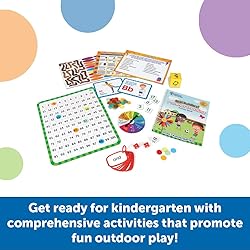 Summer Learning Adventures: Kids get ready for kindergarten with this set’s comprehensive learning activities that promote active, outdoor play! Get Up and Move: From alphabet yoga to reading games to action-packed movement prompts, this set’s activities get kids outside and moving as they learn! Build School Skills: This set’s activities help little ones learn letter, number, and color recognition, count to 100, learn to read, build handwriting practice for kids, and more! Includes Reusable Storage: When learning is done for the day, these fun activities return to the set’s reusable storage box for easy clean-up. Give the Gift of Learning: Whether you’re shopping for holidays, birthdays, or just because, award-winning educational toys from Learning Resources help you discover new learning fun every time you give a gift! Learning is Where We Play: Discover how we turn a childhood love of play into a lifelong love of learning with a visit to our brand store! 0
