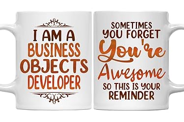- Business Objects Developer 11oz White Ceramic Mug: Monizilucky creates unique funny coffee mugs which make great Birthday gift ideas for men, Birthday gift ideas for women, Valentine’s Day gift ideas, Mother’s Day gift ideas for Mom from Daughter or Son, Father’s Day gift ideas for Dad, Anniversary gift and Christmas present ideas for him or her. This funny coffee mug is made out of high quality ceramic. If you're shopping for a gift, you've found the one. Have a great gift delivered to their door, on-time in a nice gift box. This is the perfect mug for you or for someone you want to bring a smile to. A perfect size mug you can drink tea, soup or coffee out of. ● Printed in the USA ● Worldwide shipping ● Print type: Sublimation printing ● Material: Ceramic ● Color: White ● Sizing: 11oz ● Printed on both sides.