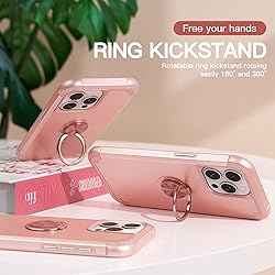 IDweel for iPhone 15 Pro Case with Screen Protector+360°Ring Holder Stand+Camera Lens Protector,2 in 1 Shockproof Slim Fit Hybrid Heavy Duty Hard PC Cover Soft Silicone Bumper Full Body Case,Rose Gold