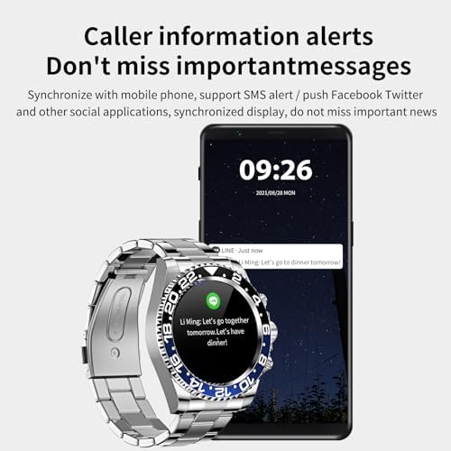 Smart Watch for Android Phones Answer Make Calls SMS Reminder Smartwatch Compatible iPhone Bluetooth Stainless Steel Fitness Watch Men Smart Watches for Men Reloj Inteligente