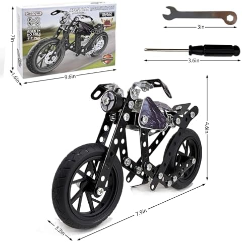 Metal Model Motorcycle Kits - 117 Pcs Erector Sets for Boys Age 8-12, Motobike Building Toys, STEM Kits for Kids Age 8-10, Assembly Car Project for 14 and Up, Gifts for 15 16 Year Old Boys and Adults