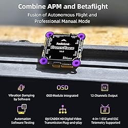 【Combine APM and Betaflight】CrossRace combines the high-precision PosHold Flight Mode of the autonomous flight controller APM and the professional manual control performance of Betaflight. 【High-Speed At PosHold Mode】Radiolink's unique high-dynamic algorithm makes the aircraft fly at high speeds even at PosHold flight mode, and has been widely used in the field of high-altitude aerial photography. 【DJI/CADDX HD Digital Video Transmission Plug-and-play】 CrossRace supports DJI O3 and CADDX Walksnail Avatar HD PRO KIT high-definition digital image transmission plug-and-play. 【High Performance】CrossRace is 5V&12V Dual BEC Built-in & 4-in-1 ESC and ESC Telemetry Supported. 【Unique Automation Software Testing System】The same Automation Software Testing System as Radiolink PIXHAWK and Mini Pix helps realize test automation from the sensor to connection ports and interface. The test efficiency and quality assurance are far superior to traditional manual tests, ensuring the quality of every function of every CrossRace. 【Small Size, Full Functions】with a mini size of 37*37mm, CrossRace supports up to 12 channels output and is adaptable to a 2-8 axis multi-rotor. It can be used in multiple industries such as aerial photography, public safety, aerial surveying and AEC, electricity, oil and gas, surveying and mapping, agriculture, education, and flight formation. 【OSD Module Integrated】CrossRace can graphically display OSD information such as the flight direction and position of the aircraft in real-time without the need for an external OSD module. Achieve a more comfortable flying experience.