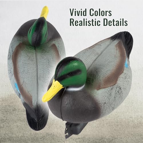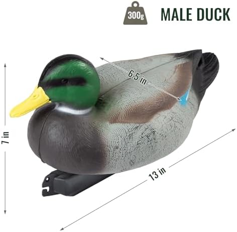 - 【LIFELIKE DESIGN】The plastic duck decoy is grooved with detail patterns, enhancing its realistic appearance; The slightest breeze can cause the classic mallard decoy to move in a natural way, attracting nearby ducks to approach