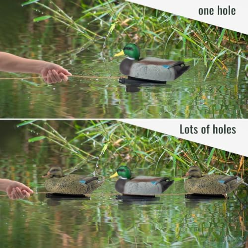 - 【WEIGHTED KEELS】Due to the keel, the lifelike floating mallard ducks can maintain balance and won't sink in the water; There are 3 holes on the keel, allowing you to tie anchor lines for versatile movement in currents, winds, and depths