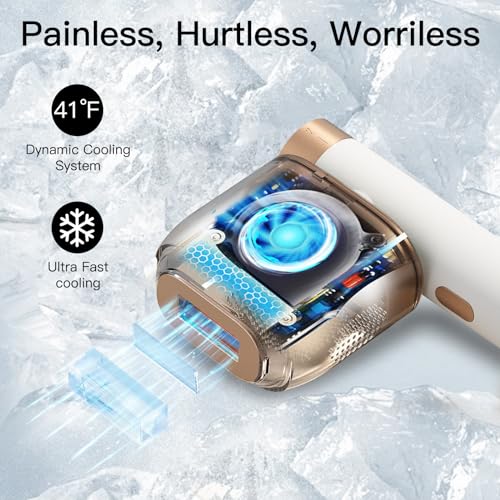 - ❄️ 5℃/41℉ Ice-Cooling Painless Care ❄️ The hair removal device for women uses advanced DCD ice-cooling system to low skin temperature immediately to 5℃/41℉ and soothe the burning sensation, making the hair removal treatments painless and skin-friendly. Say goodbye to skin redness or any hurt caused by hair removal device without ice-cooling function in the market. Enjoy the painless and ice-cooling hair removing now!📌Note: Please remove the installed attachment before enjoy the ice care mode.