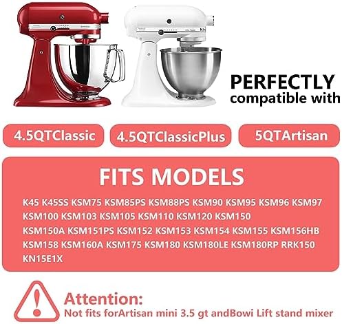- [Compatible with multiple models]: The mixing bowl perfectly matches the mixer base of KMS150KSM180KSM170KSM160KSM155 nd other models. Through the strong locking function, it ensures that the mixing bowl is firmly fixed on the base. Thus keeping the ingredients safe and secure Stability of operation. (Note: Mixing bowl locking type is only suitable for bottom locking mixers. )
