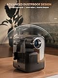 【2-Second Smooth Electric Focus】Easy remote to access focus for a clear image. Compared to manual focus ones, you can place this outdoor projector wherever you want. Do not forget to use the 75%-100% zoom feature to adjust a comfortable size of the projection 【The Newest Fully Sealed Mini Projector】The movie projector equipped with fully sealed optical technology, maintaining the Lower Noise and a longer lifespan. The Dust-proof Construction ensures dust and debris stay out 【Bluetooth 5.1 Technology】Featuring upgraded Bluetooth 5.1 technology, this bluetooth projector comes with a built-in speaker for a cinematic sound experience, which can connect to your preferred Bluetooth speakers or headphones anytime for an enhanced sound experience. Note: Bluetooth does not support smartphone mirroring 【Upgraded 1080P HD Experience】Our indoor projector features a native 720P resolution with 1080P Full HD support, ensuring crisp and vibrant images for your home entertainment. With advanced LED technology and uniform illumination, it delivers optimal clarity and brightness, making every detail pop while protecting your children’s eyes. Perfect for family movie nights or gaming sessions 【Multimedia Compatibility】The ceiling projector is equipped with HDMI, USB, Audio port with an included HDMI cable. This phone projector is the perfect solution for a variety of media devices including but not limited to TV Stick/Box, USB flash drives, Game Consoles, PCs, Smartphones, Tablets, and Laptops. Our small projector is easy to use and provides a great value