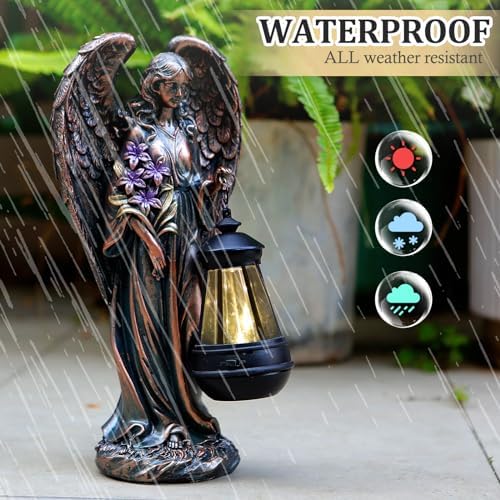 Solar Angel Outdoor Garden Decor Statues – 13.2 inches Solar Outdoor Sculptures for Outside Yard Art Patio Balcony Front Lawn Ornaments Gifts for Mom Grandma Women(Bronze)
